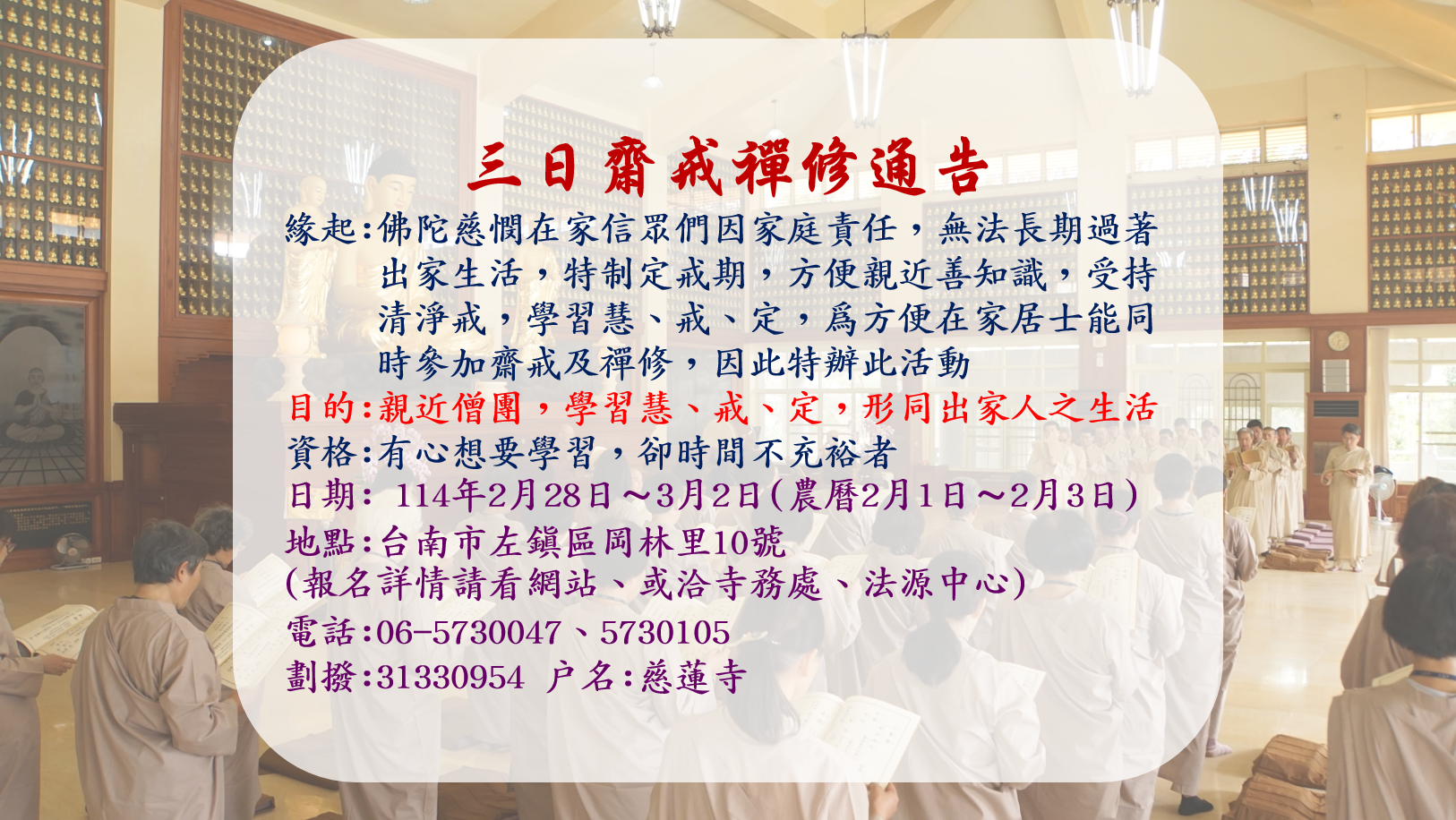 三日齋戒禪修 2月28日~3月2日